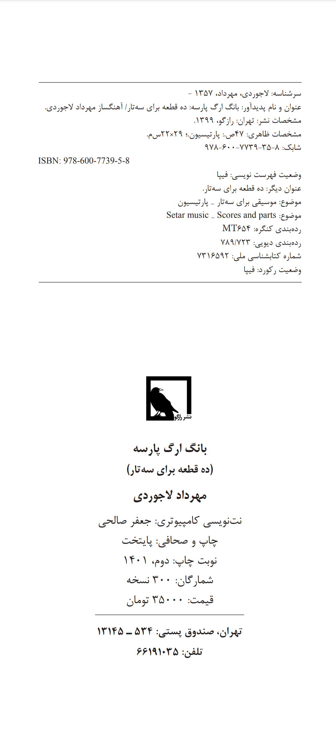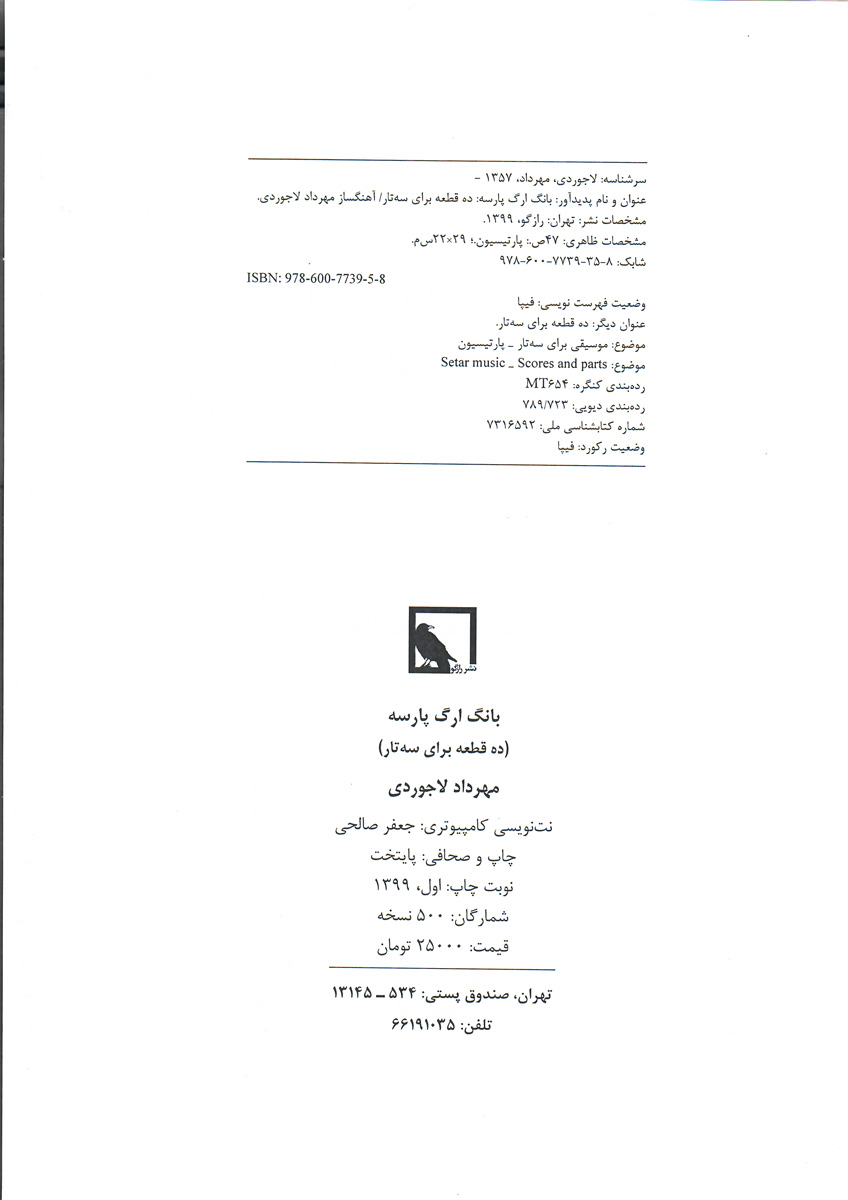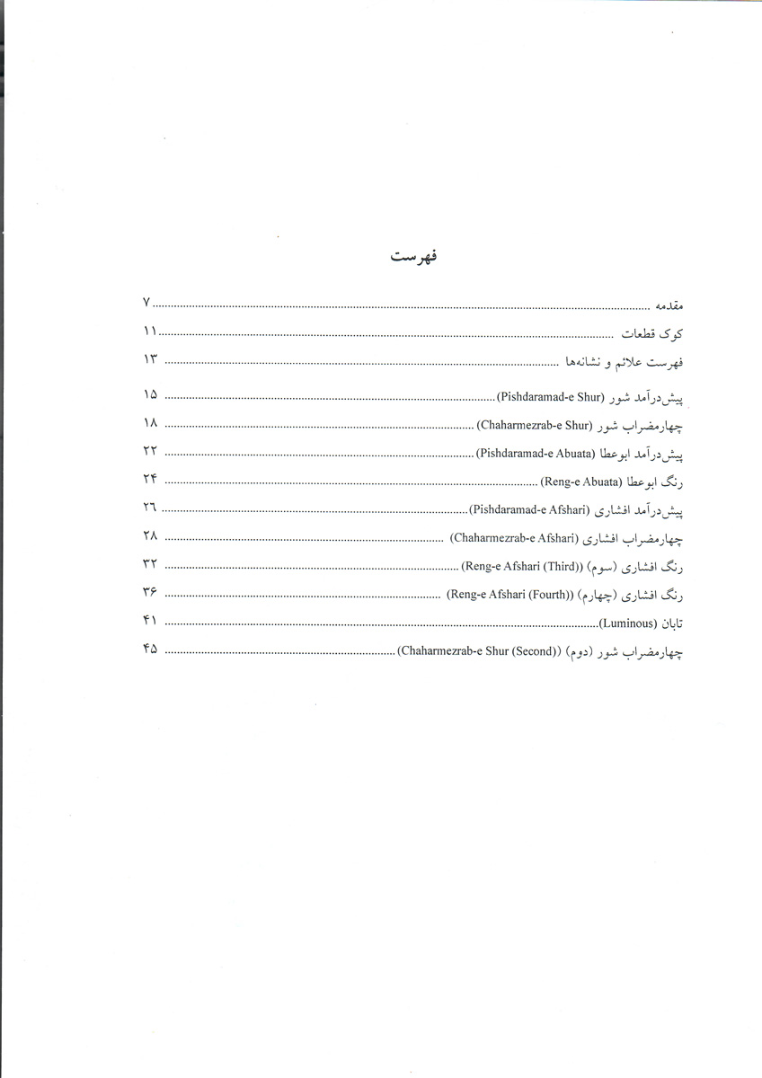 این مجموعه شامل ده قطعه از قطعاتی هستند که از حدود پانزده سال پیش تا به امروز توسط نگارنده ساخته شده اند. طبق رویّه شخصی برای قطعات با فرم های سنّتی پیش در آمد، چهارمضراب و رنگ نامگذاری خاصّی انجام نمی گیرد و این قطعات با شماره از هم متمایز می شوند. شماره های پیشین این گونه قطعات در این مجموعه در گذشته در مجموعه « پارسانْ دستان » چاپ و منتشر شده اند.